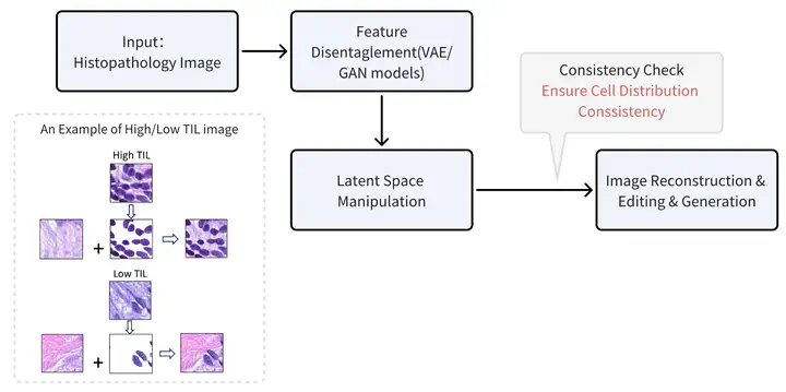 • Develop generative models (e.g., VAEs, GANs) to separate and control histological features.