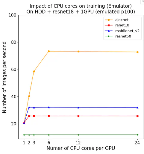 After implementing the emulator, we managed to use it to reproduce Figures 3, 4, 5, and 6 in the paper “Analyzing and Mitigating Data Stalls in DNN Training” after a series of experiments and testing. It was noted that some environments in the paper were not the same as what we ran in the past week, but general patterns did apply to the expected hypothesis and measurements. We double checked all the data and figures produced and found out that our prototype meets our expectations, and it was time to look for other papers to reproduce to make the emulator more interesting. The orginial comparing with the reproduced figures are demonstrated as below, you can notice that the patterns do reflect our expected results: Original Figure 3: